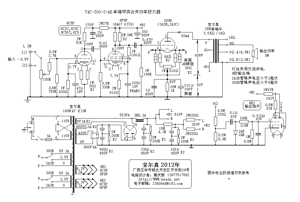 300B灯丝采用直流供电.8欧输出端,噪声电压小于5毫伏.
