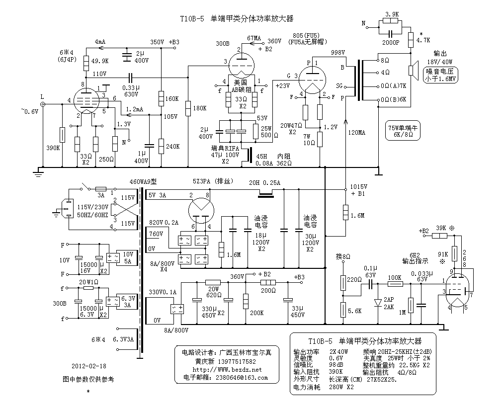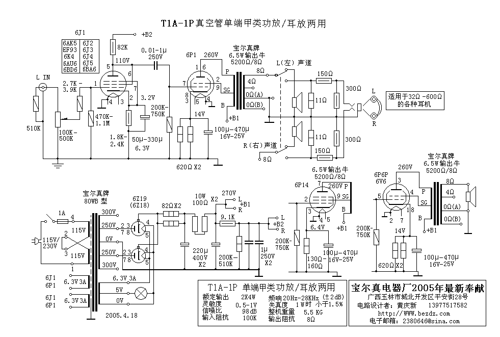 6V6,6P14,2A3推挽推动/EL34,KT88, FU7,845,211,813, 可用做:胆前级,无源前级. |